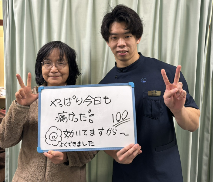 最初は「これで治るのか?」と思いましたが先生が最初の施術の日に「必ず治るのであきらめないで頑張りましょう」と言って下さったので、なかなか治っている感じがしなかった時も乗り切れました!言葉一つでもかけて下さる言葉で変わります。それといまは歩くのが怖くなくなり本当に嬉しいです!
