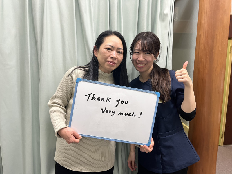 今は指が改善したことにより他の身体の悪い部分を施術してい頂いております。当たり前のことができることに喜びを感じ、上囿先生や他のスタッフの方には本当に感謝しています。施術してもらった後はとても楽になります、なので主人にも紹介して夫婦共々お世話になっています!