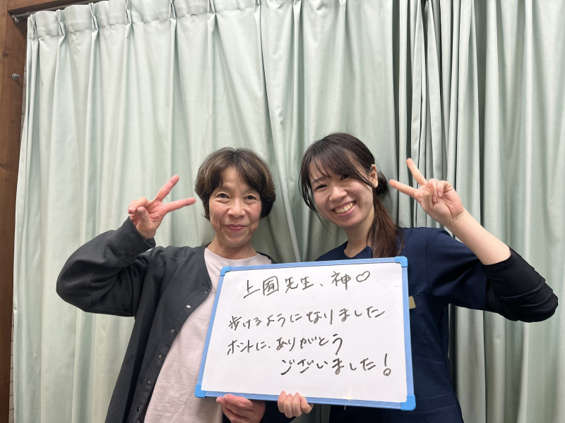 施術は少し痛いかもと聞いてはいましたが、初回から不快な痛みではなく施術後は楽に歩行ができ、気持ちが晴れやかになりました。